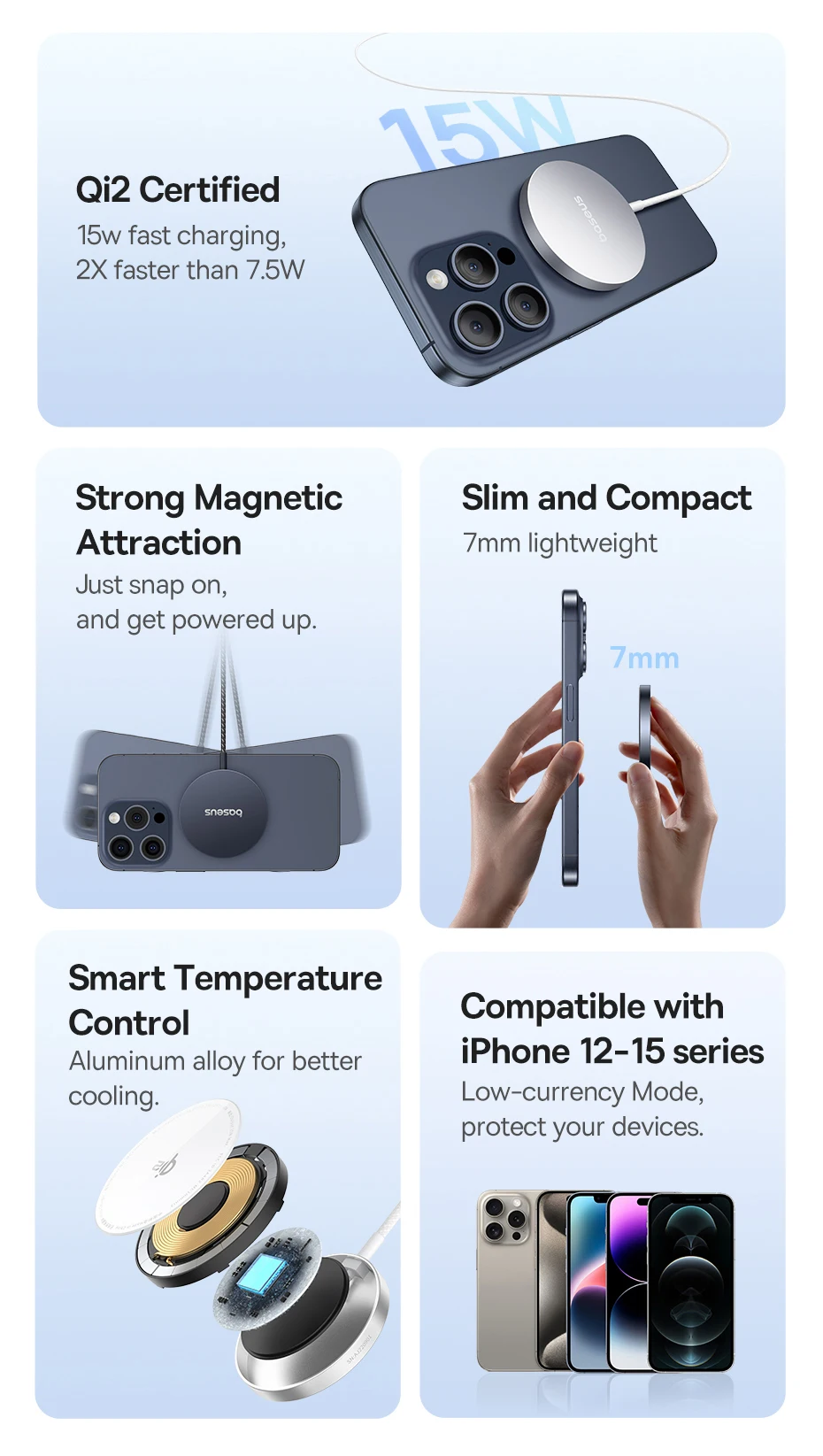 ⑤Compatível com a série iPhone 12-15 (modo de baixo consumo, protege seus dispositivos)